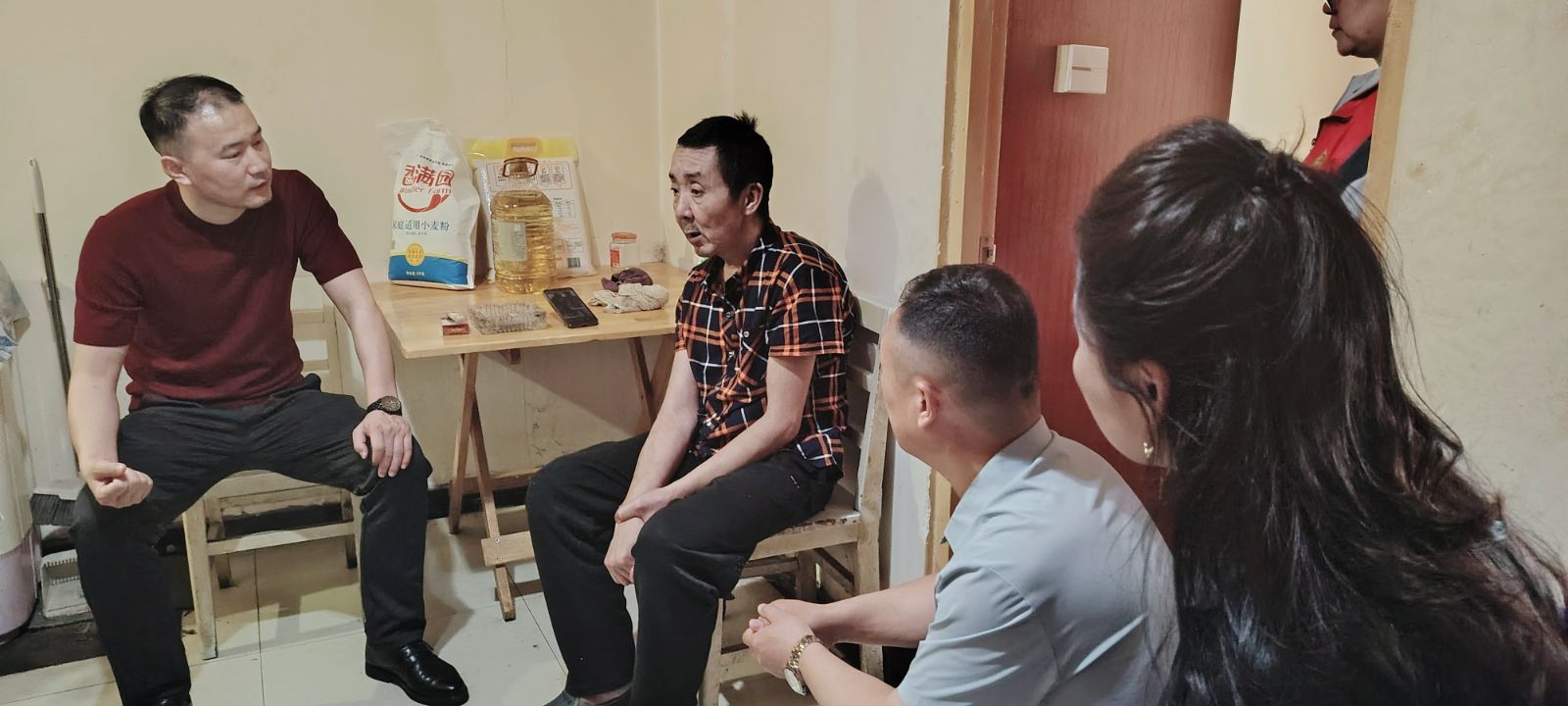 没有华丽的言辞,只有最真挚的陪伴与问候。我们耐心询问刘先生的身体状况、日常康复情况,细致了解母子二人的实际需求——从饮食起居到心理状态,每一个细节都关怀备至,每一句问候都饱含深情。