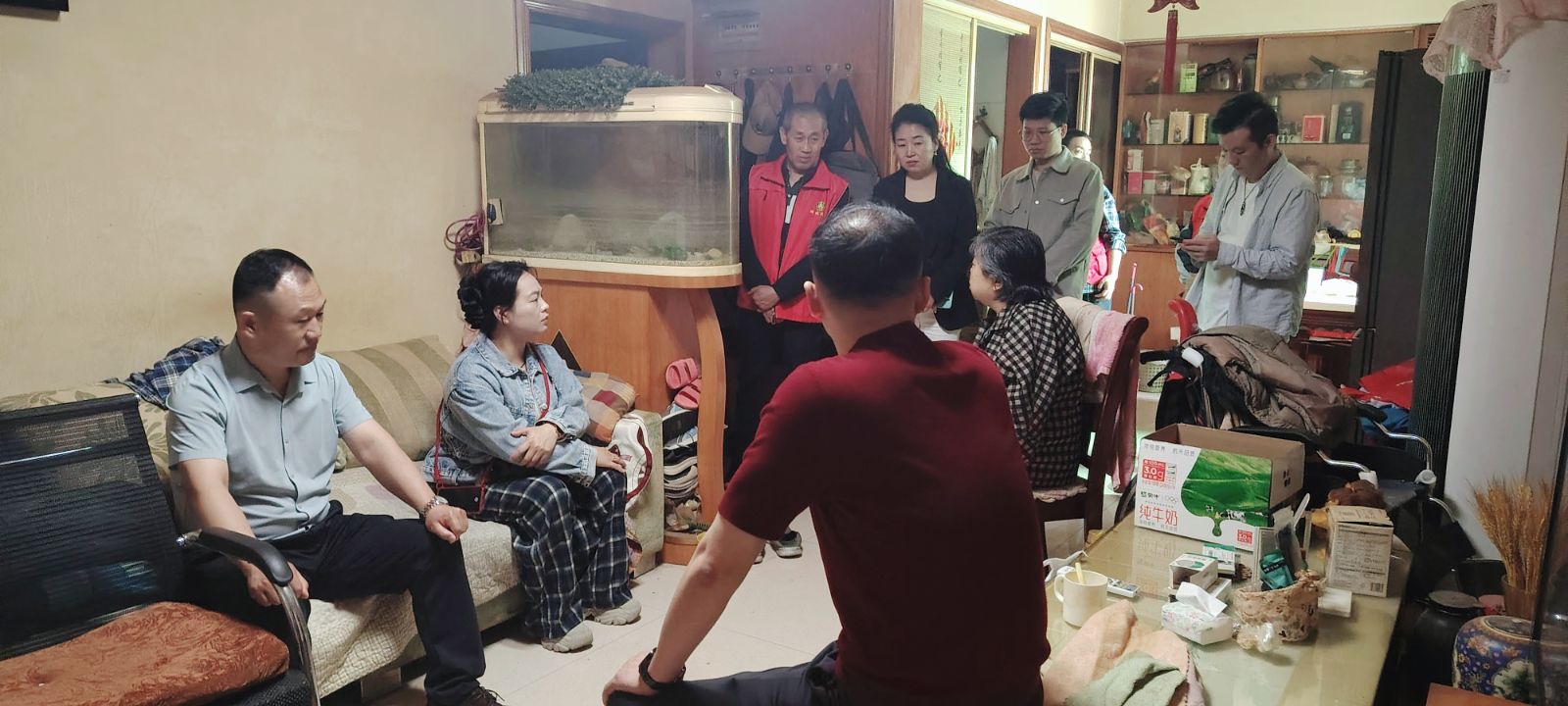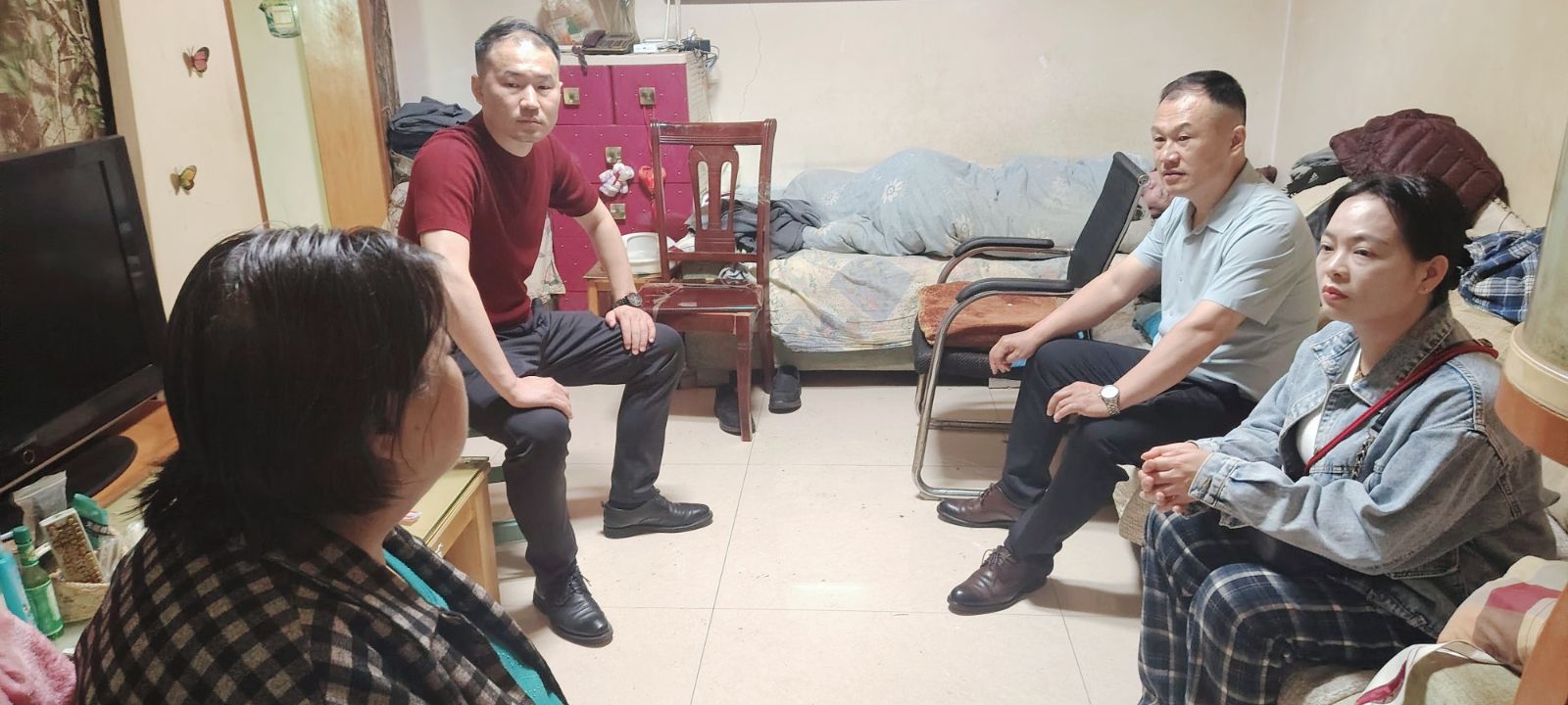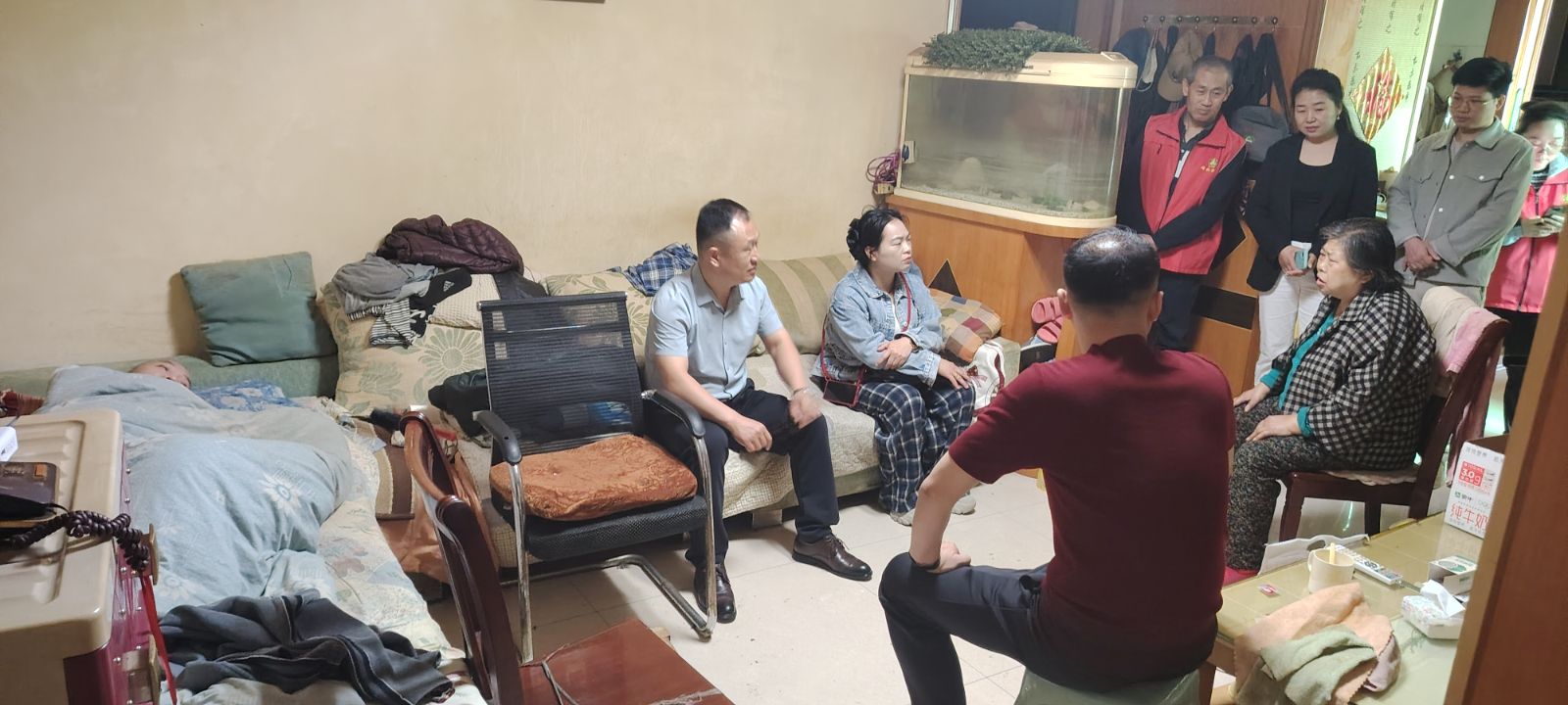 走进邹先生家中,没有过多的寒暄,只有真诚的问候与贴心的陪伴。员工们主动放下手中的礼品,围坐在邹先生家人身边,言语间满是关切。