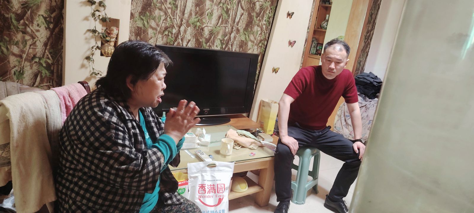 予集员工叮嘱邹先生家人要保重自己的身体;真诚的倾听和贴心的行动,让这个冷清的小屋,瞬间充满了温暖。