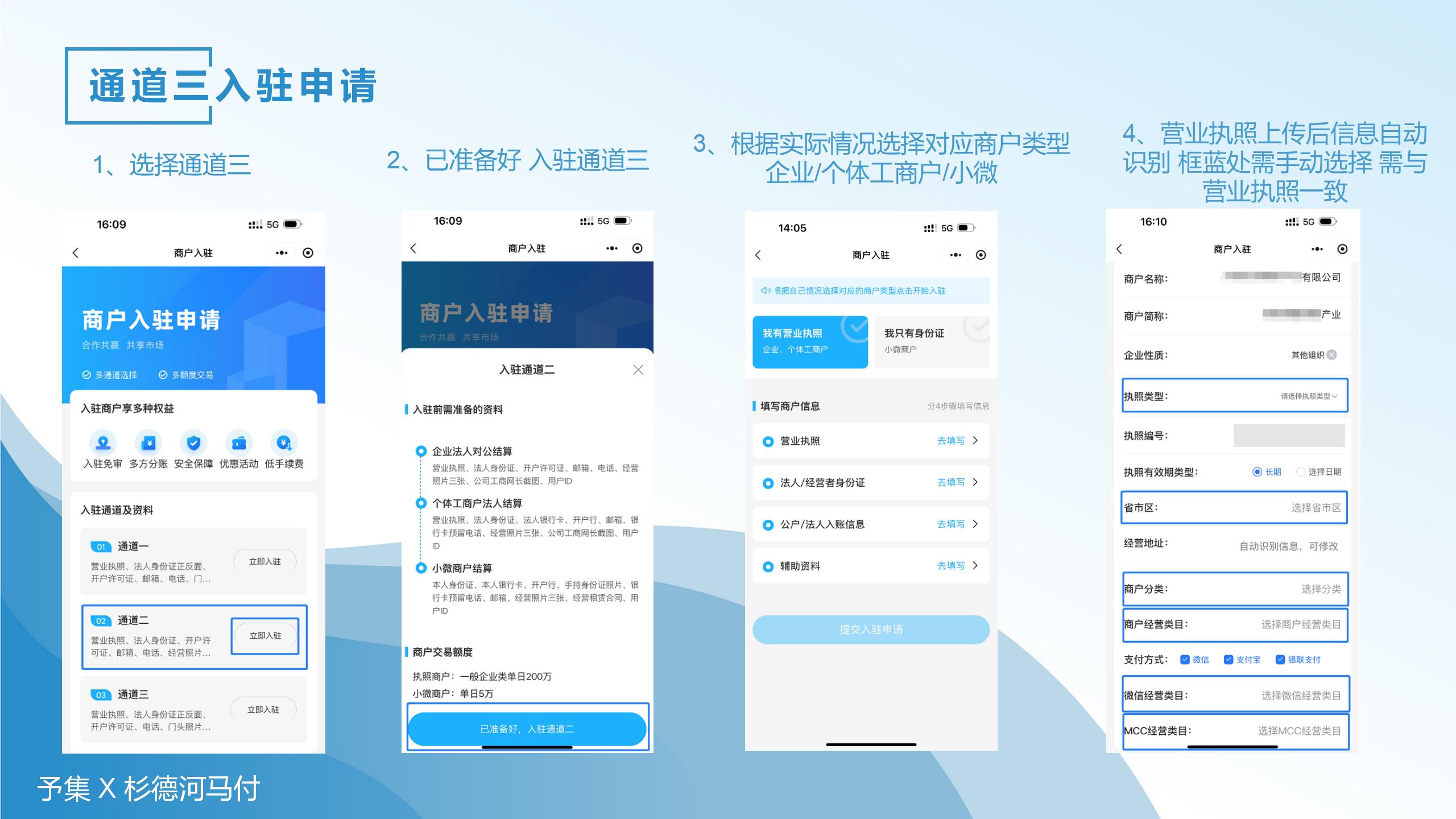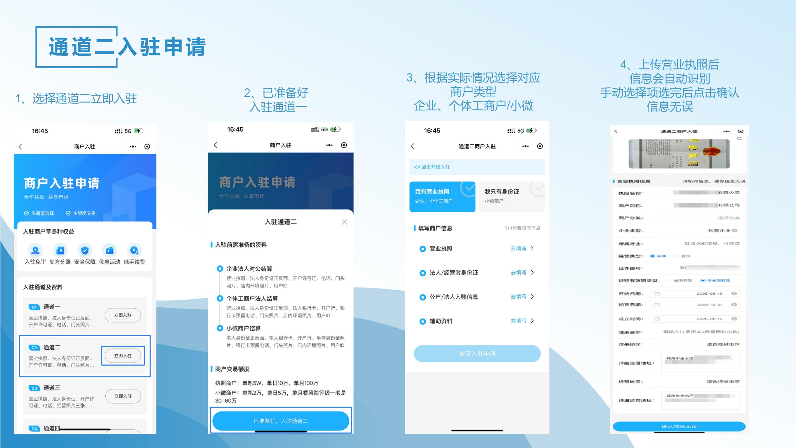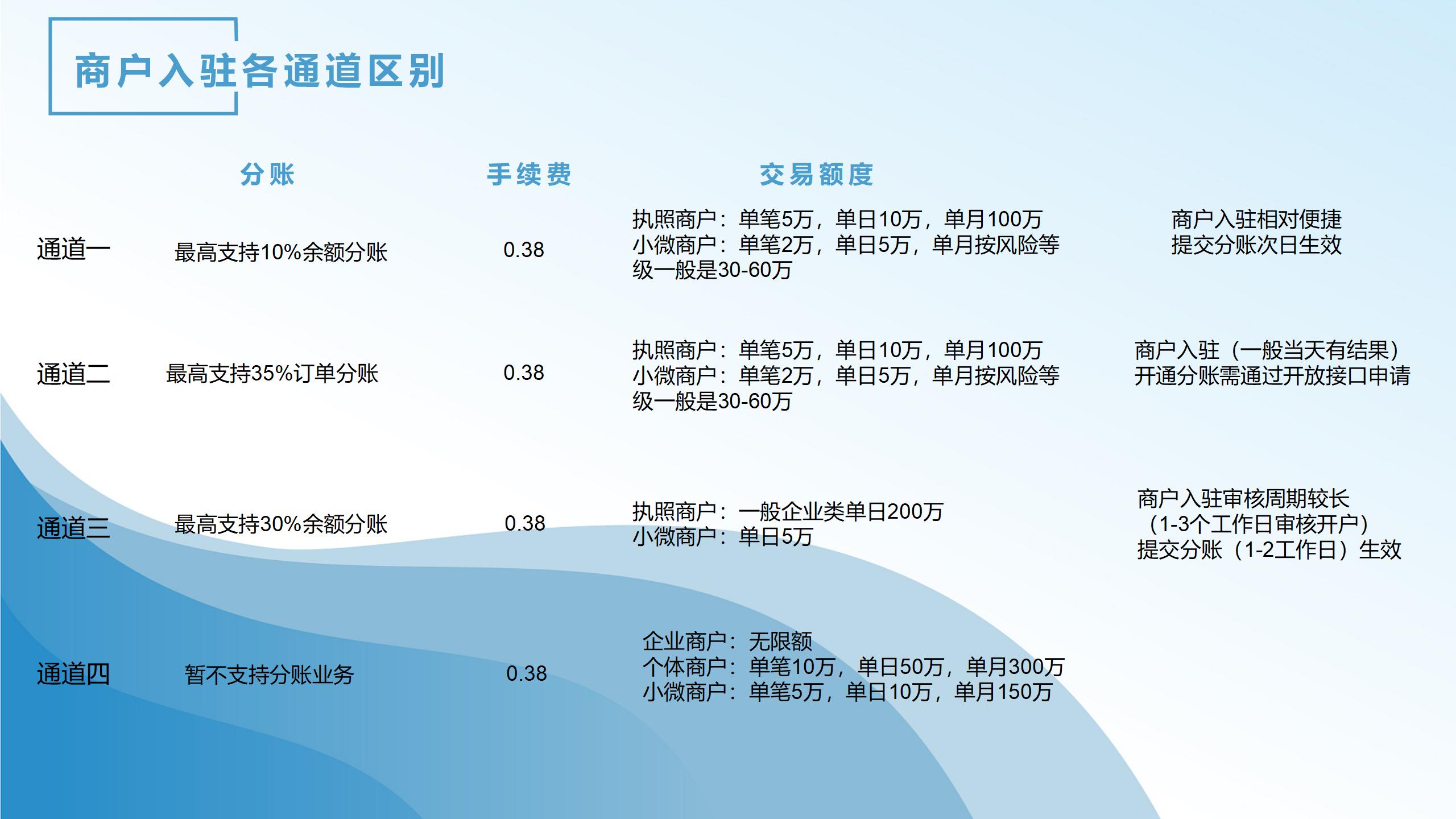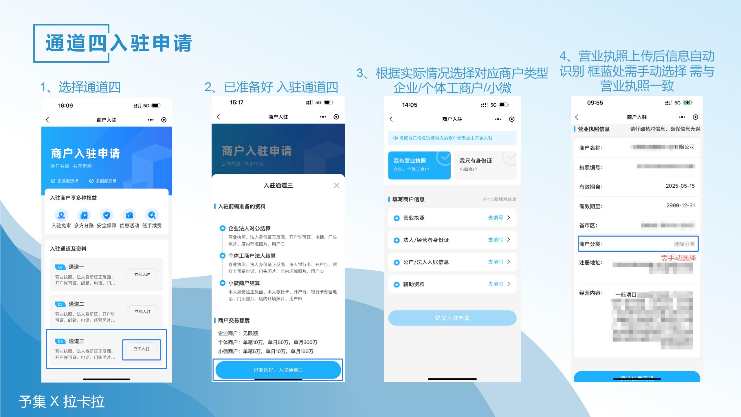 予集商户入驻分为四个通道:分别为通道一、通道二、通道三、通道四;通道之间各有优势,查下以下内容了解不同及入驻流程。