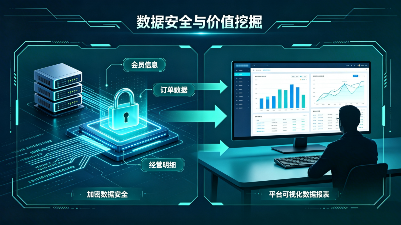 在数据安全与价值挖掘上,商家的会员信息、订单数据、经营明细等核心数据,全部归商家所有,采用加密技术保障数据安全,杜绝信息泄露。同时,平台提供可视化数据报表,帮助商家精准掌握经营情况,优化经营策略,提升客流与复购率,实现降本增效。